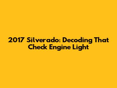 2017 Silverado: Decoding That Check Engine Light