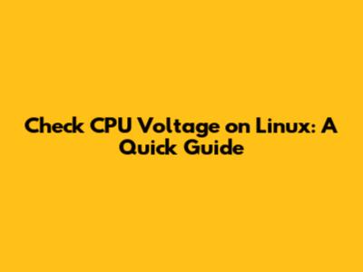 Check CPU Voltage On Linux: A Quick Guide
