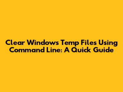 Clear Windows Temp Files Using Command Line: A Quick Guide