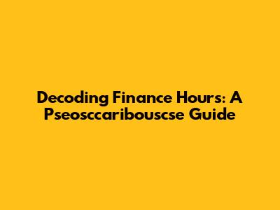 Decoding Finance Hours: A Pseosccaribouscse Guide
