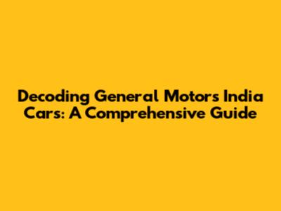 Decoding General Motors India Cars: A Comprehensive Guide