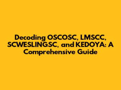 Ever stumbled upon a series of acronyms and felt like you were trying to decipher an ancient code? Well, today, we're cracking the code on OSCOSC, LMSCC, SCWESLINGSC, and KEDOYA. These terms might seem like alphabet soup, but they represent significant organizations and concepts, especially within specific industries and regions. Let's dive in and unravel what each of these stands for and why they matter.