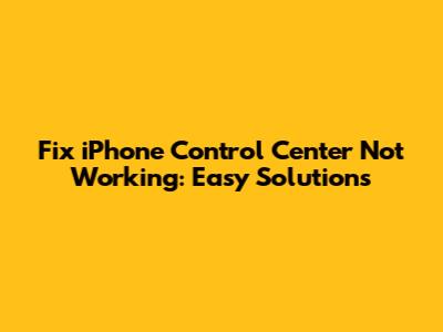 Fix IPhone Control Center Not Working: Easy Solutions