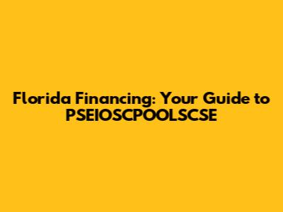 Hey everyone, let's dive into the world of Florida financing, specifically focusing on something a bit unique: PSEIOSCPOOLSCSE. Now, before your eyes glaze over, I promise to break it down in a way that's easy to understand. We're going to explore what PSEIOSCPOOLSCSE is all about, how it relates to financing in Florida, and why it might be relevant to you. Think of this as your friendly, no-jargon guide to navigating this specific area of Florida's financial landscape.