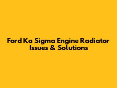 Ford Ka Sigma Engine Radiator Issues & Solutions