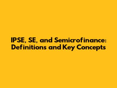 IPSE, SE, And Semicrofinance: Definitions And Key Concepts