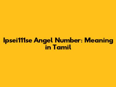 Ipsei111se Angel Number: Meaning In Tamil