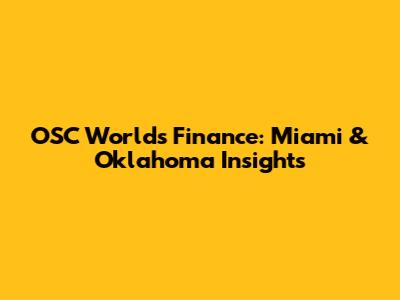 OSC Worlds Finance: Miami & Oklahoma Insights