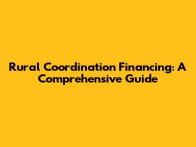 Rural Coordination Financing: A Comprehensive Guide
