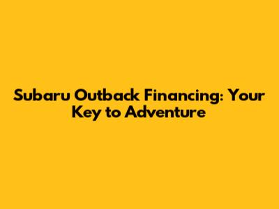 Subaru Outback Financing: Your Key To Adventure