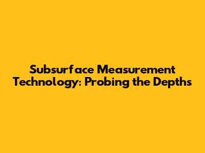 Subsurface Measurement Technology: Probing The Depths