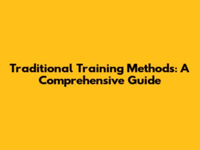 Traditional Training Methods: A Comprehensive Guide