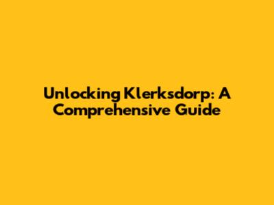Unlocking Klerksdorp: A Comprehensive Guide