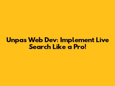 Unpas Web Dev: Implement Live Search Like A Pro!