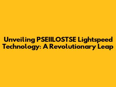 Unveiling PSEIILOSTSE Lightspeed Technology: A Revolutionary Leap