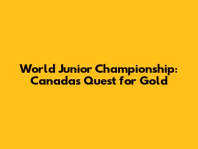 World Junior Championship: Canada's Quest For Gold
